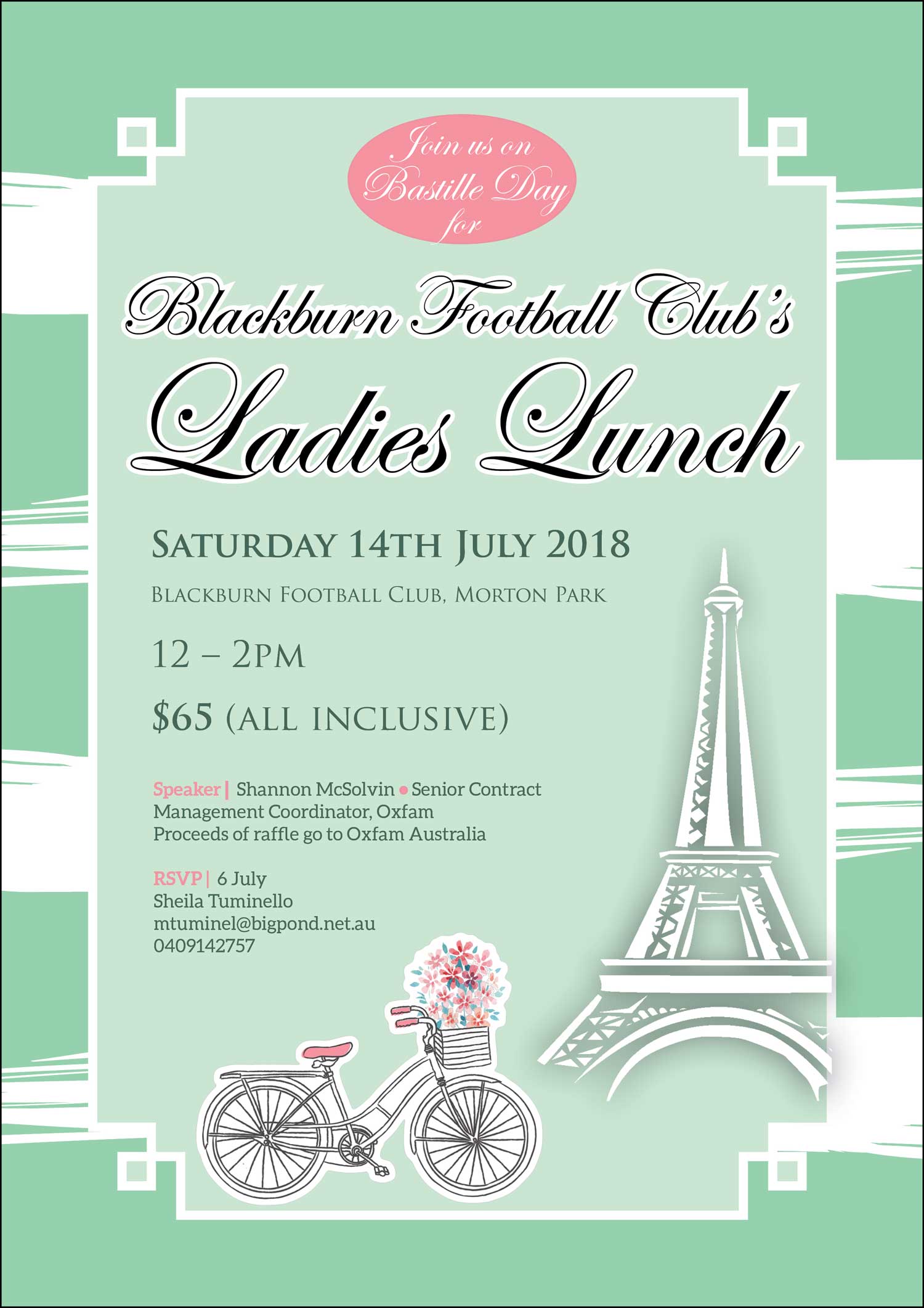 Proceeds of raffle will go to Oxfam Australia.