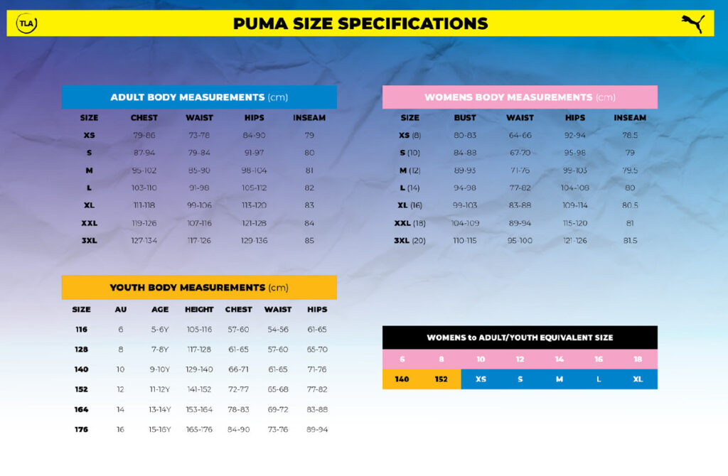 Kids 6, Kids 8, Kids 10, Kids 12, Kids 14, Kids 16, Adults XS, Adults S, Adults M, Adults L, Adults XL, Adults 2XL, Adults 3XL